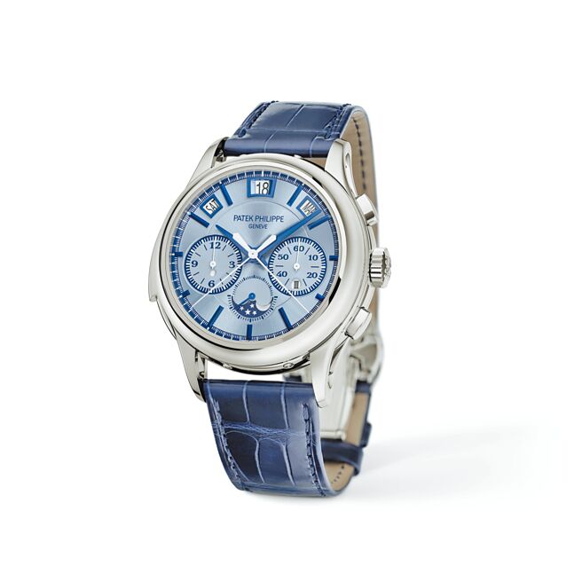 百達翡麗新推出5308G-001四重複雜功能腕錶,換上淺藍色錶盤更吸睛。(Patek Philippe提供)