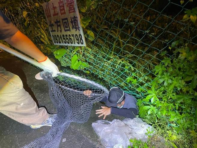 嘉縣家畜所動保管制隊員冒險跳下田拯救被棄養的5只幼犬。(家畜所提供/張亦惠嘉縣傳真)
