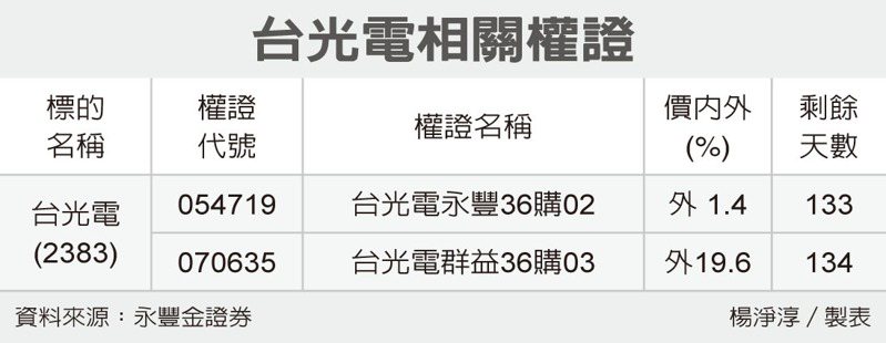權證發行商建議,看好臺光電後市的投資人,可買進價外20%至價內10%、有效天期超過60天以上的認購權證,參與相關個股的波段行情。